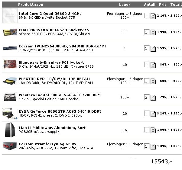 krizla Skrevet 24. juli 2007 Skrevet 24. juli 2007 Kan gi en liten kommentar. Syns du har valgt greie komponenter, men tror du skal ta en tur på nettet og sammeligne litt priser. Komplett har tilbud på den rammen du har satt opp til 899.- Se om andre har erfaringer med det kabinettet du har satt opp og 8800 kortet. Vet en del sliter med å sette inn så store kort i enkelte kabinetter