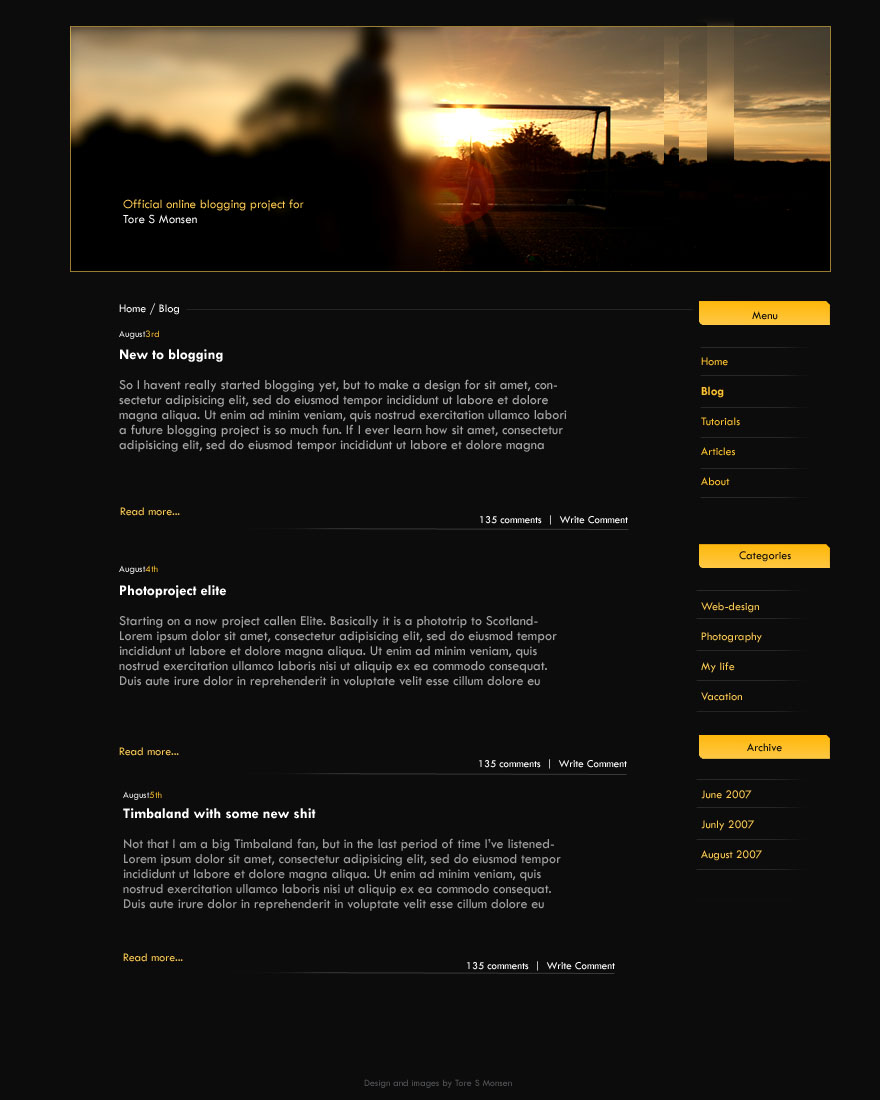 Soulwax Skrevet 4. august 2007 Skrevet 4. august 2007 (endret) Aldri før prøvd meg på noe blogg design (kun webdesing som portfolio og bedrift-sider) så dette var nytt for meg. Prøvde på en ren å pen stil som passer meg perfekt. Håper på litt kritikk på hva som kan forbedres her, for iom at det er min første regner jeg med at jeg har noe å lære når det kommer til blogg-designs. Uansett, her er designet. dA - for de som vil kommentere der Endret 4. august 2007 av gåte