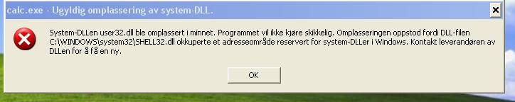 Hårek Skrevet 12. august 2007 Skrevet 12. august 2007 Sjekk denne: http://support.microsoft.com/kb/935448 Certain programs may not start, and you receive an error message on a computer that is running Windows XP Service Pack 2: "Illegal System DLL Relocation"