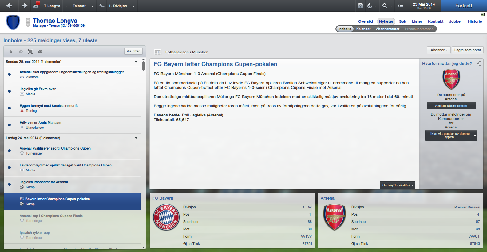 Xanman Skrevet 15. februar 2013 Skrevet 15. februar 2013 (endret) Bayern leder 2-0 mot Wolfsburg og går mot sin ellevte strake seier i alle turneringer. De har kun sluppet inn syv mål i ligaen denne sesongen, og ligger femten poeng foran andreplassen. Av en eller annen grunn gjør det bare at jeg gleder meg enda mer til tirsdag. Endret 15. februar 2013 av Le Professeur
