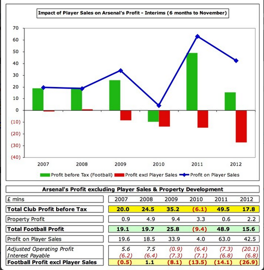 Arsenal har annonsert halvårsresultater i dag. Alt kan i sin helhet lese her http://www.arsenal.com/assets/_files/documents/feb_13/gun__1361806248_Arsenal_Holdings_Announcement_.pdf