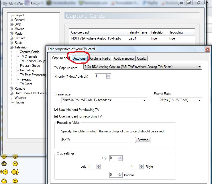 Lifeform Skrevet 30. september 2007 Forfatter Skrevet 30. september 2007 Jada, det går helt greit.Når du legger til TV kortet i MP så er det en fane som heter "Autotune" Velg den, og hvilket land du er i, om du har kabel eller antenne og trykk Scan. Da kommer alle kanalene opp. Hei... Fant ikke den fanen jeg ? Hvor mer nøyaktig er det man finner denne her ?