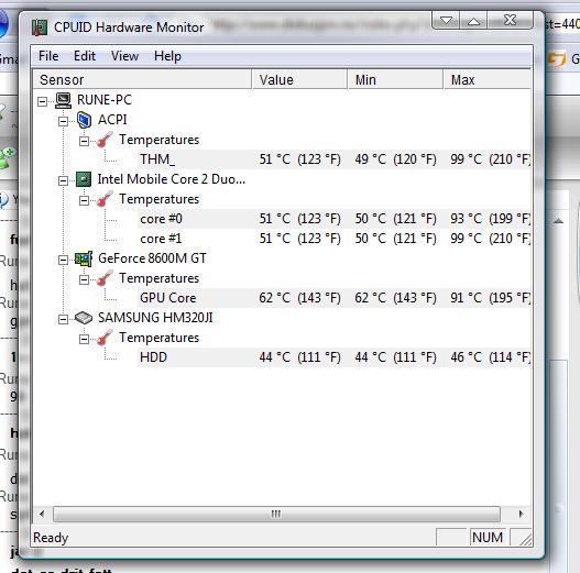 KKake Skrevet 28. juni 2009 Skrevet 28. juni 2009 (endret) Når jeg hadde XPS M1530 fikk jeg CPU opp i nærmere 90 grader og GPU opp i 99 grader med å spille FSX i sommervarmen. EDIT: Var visst omvendt. 99 grader på CPU og 91 på GPU. Endret 28. juni 2009 av KongKake