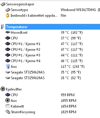 arthoz Skrevet 30. august 2007 Skrevet 30. august 2007 Core0: 34 Core1: 31 Core2: 32 Core3: 29 Høyeste tempen ellers speedfan måler er 47C Det er 21C her inne nå.
