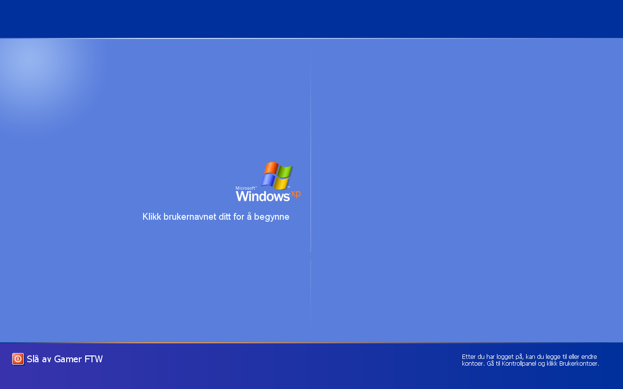lasr Skrevet 30. august 2007 Skrevet 30. august 2007 Prøv "Ctrl-Alt-Del" to ganger kjapt- da burde du få opp dialogboksen for pålogging. LASR