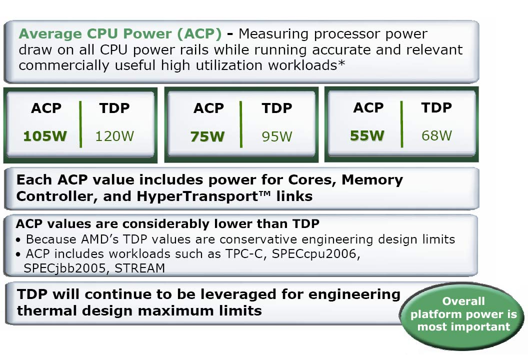 jon67 Skrevet 19. september 2007 Skrevet 19. september 2007 (endret) 130W TDP betyr ikke at prosessoren nødvendigvis bruker 130W ved max load, men at kjøleløsningen skal designes for å klare en slik effekt. Det dreier seg her om en EE, så det er mulig man har tatt høyde for overklokking osv. F.eks har E4300 en TPD på 65W, men bruker mye mindre @stock. 9525689[/snapback] Hva TDP "betyr" er avhengig av hem som sier det. AMD har lansert en ny forkortelse (husker ikke hva den var). Mener å ha lest at en AMD @ 65W TDP bruker mindre strøm enn en Intel. (Mener jeg leste dette på SPCR) 9526290[/snapback] Vi får nesten la Intel få lov til å definere TDP for sine egne prosessorer, så får AMD og andre utenforstående holde på som de vil. http://download.intel.com/design/processor...ex/31685401.pdf Ch 1.3, Definition of Terms: TDPThermal Design Power: A power dissipation target based on worst-case applications. Thermal solutions should be designed to dissipate the thermal design power. Siden dette er EE-prosessorer med åpen multiplier oppover tar de nok høyde for litt oc'ing i "worst case"-scenariet. Det kan også forklare "hoppet" på 35 W fra 95W TDP for Q9550 på 2.83GHz (låst multiplier oppover) Endret 19. september 2007 av jon67