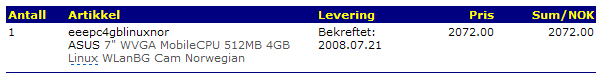 Kajac Skrevet 3. juni 2008 Skrevet 3. juni 2008 Superbillig mini-PC utsatt Den er ikke utsatt til august, men til 21. Juli skal vi tro den norske forhandleren PS.no. Men dette har jo jeg visst siden 5 Mai. Alle som har bestillt fra PS.no fikk denne beskjeden for lenge siden. Bare se bekreftelsesbildet:
