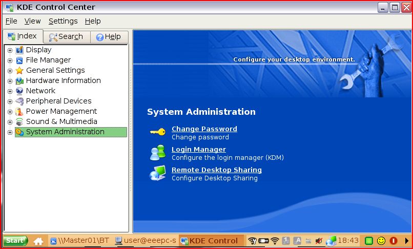 Del Skrevet 12. februar 2008 Skrevet 12. februar 2008 Jeg ser "mount mount_ehd mount.gmailfs mountpoint"OK, da kan du installere Samba, så får du alt du trenger, pluss mulighet til å dele mapper fra eeepc. Fra terminal (eller bruk Synaptic hvis du vil): sudo aptitude install samba Så kan du montere delte mapper på din eeepc, men du kan jo bare prøve å gå rett inn med Konqueror->Network Folders->Samba Shares osv. Alt-F2 ga meg ikke noe,Merkelig, har du Advanced mode?men går jeg via terminal og starter kcontrol kommer jeg litt videre. Ser System Administrator, men ikke noe User Management.Terminal funker like godt. Jeg så kcontrol var en smule mangelfull. Mulig du kan installere noen pakker og dermed få brukerkontroll lagt til, f.eks. se om noen nyere versjon er tilgjengelig (du har vel åpnet pakkebrønner som forklart en side tilbake?). Bare prøv (dropp update linjen hvis du allerede har oppdatert med nye pakkebrønner): sudo aptitude update sudo aptitude install kcontrol Du kan naturligvis også gjøre alt rett i terminal, kommandoen passwd endrer passord til brukeren som kjører kommandoen, adduser legger til bruker eller gruppe til systemet (eventuelt gruppe til bruker), usermod modifiserer eksisterende bruker. Alle kommandoer har en manualside ved kommandoen man, f.eks. man usermod (manøvrer i siden med k, b, ENTER, SPACE og q), så hvis du skal endre navn på en bruker fra per til espen, så gjør du det slik fra terminal: sudo usermod -l espen per Passord endres ganske enkelt ved passwd