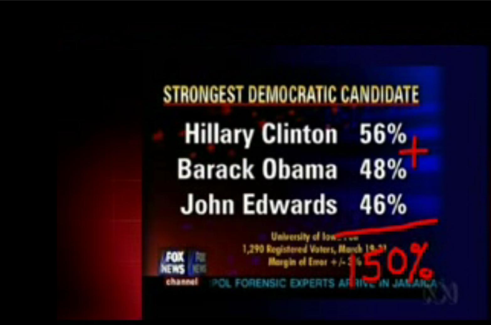 Les: 56 % kunne tenke seg å stemme på Clinton, 48 % kunne tenke seg å stemme på Obama og 46 % kunne tenke seg å stemme på Edwards.