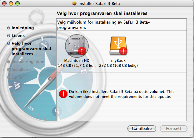 Anterialis Skrevet 21. oktober 2007 Skrevet 21. oktober 2007 (endret) Hei, jeg har nettopp lastet ned safari(beta) 3.0.3 fra apples sider, men når jeg skal installere står det at volumet (mac HD) ikke oppfyller kravene til installasjonen, og jeg får dermed ikke installert. Hva kan være årsaken til dette? Det står at requirementsa for installasjonen er osX 4.9 eller høyere. Jeg har jo 4.10. Noen forslag? På forhånd takk=) Endret 21. oktober 2007 av w3p