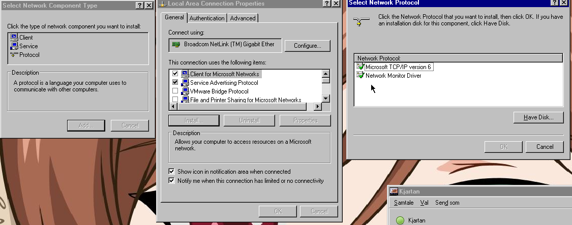 haalo Skrevet 30. oktober 2007 Skrevet 30. oktober 2007 (endret) En jeg kjenner trengte hjelp med å spille RA2 over LAN, da dette spillet bruker IPX til LAN-spilling. Fant fram til menyen der en kan legge til protokoller, men fant ikke IPX i listen. Screenshot fra menyen i XP Pro: Såvidt jeg har forstått så kan jeg legge til støtte for IPX uoffisielt, det jeg lurer på er: Hvilken metode er tryggest og mest stabil, har funnet et par sider om det, men de ser litt "skumle" ut . Har dere noen erfaringer? Endret 30. oktober 2007 av haalo