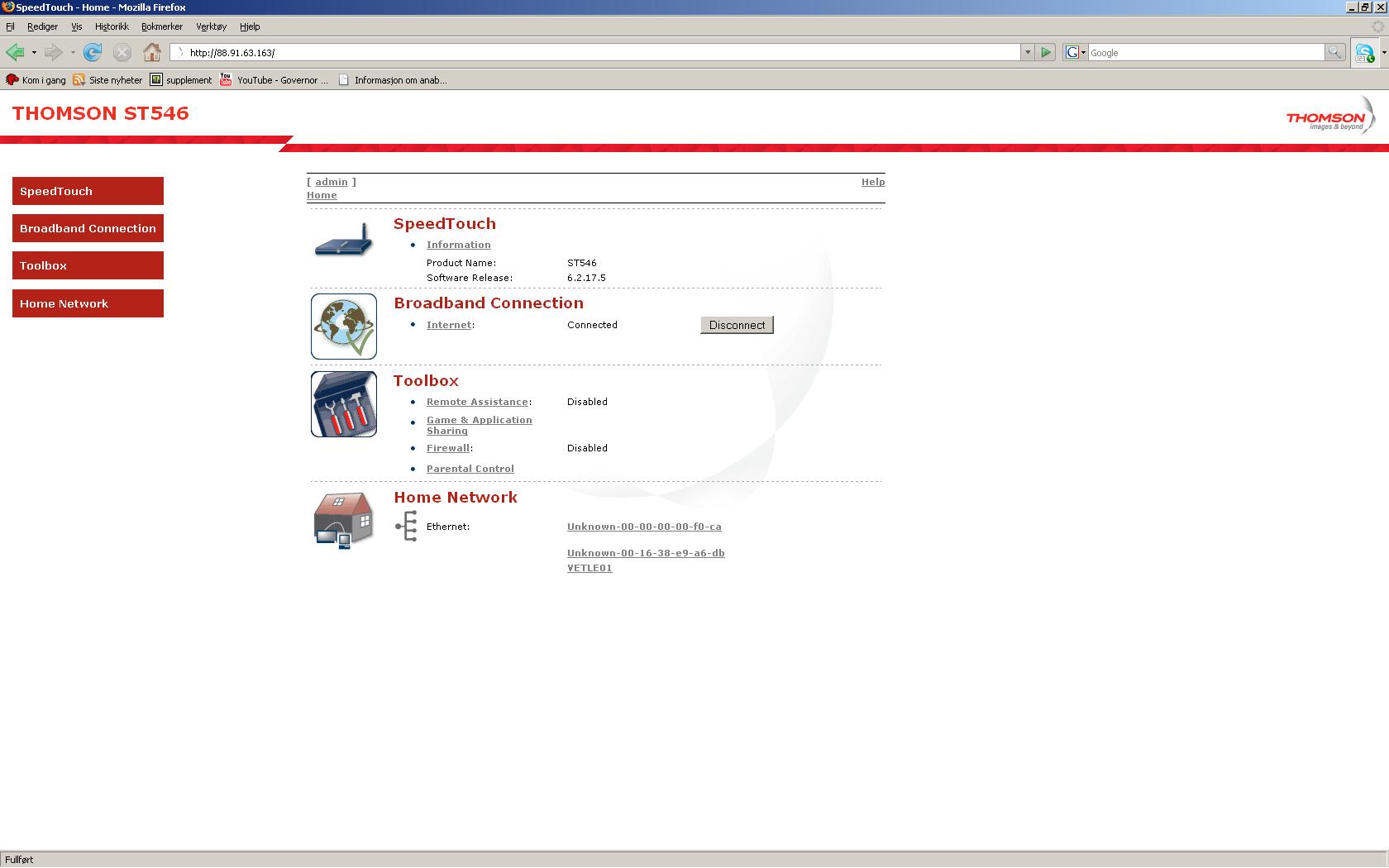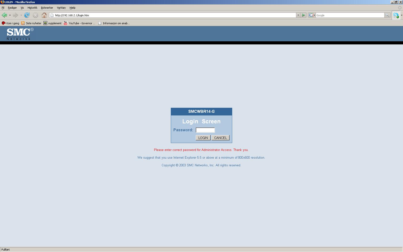 Sandsvei Skrevet 10. november 2007 Skrevet 10. november 2007 Hei , Jeg får ikke til å connecte Lord of the Rings Online til internett. Jeg misstenker at det har noe med routern min å gjøre. Problemet her er at jeg ikke tror jeg har kunnskap om å åpne porter og slikt. Jeg har kommet meg inn på modemet og prøvd litt forskjellige ting som å disable firewallen uten at det har hjulpet noe. Men jeg kom inn på noe annet også her en dag(vedlagt bilde) SMC, og det er jo navnet på nettverket jeg bruker. Der trenger jeg et passord som jeg ikke har i det hele tatt. Jeg bor på hybel, og internett er inn i prisen. Jeg har prata med eieren og han sier han ikke har noe passord til "SMC". Bittorrent program har og problemer av å til. Men noen ganger funker de. Her er modemet/routern jeg har kommet meg innpå Her er den jeg trenger passord til(SMC)