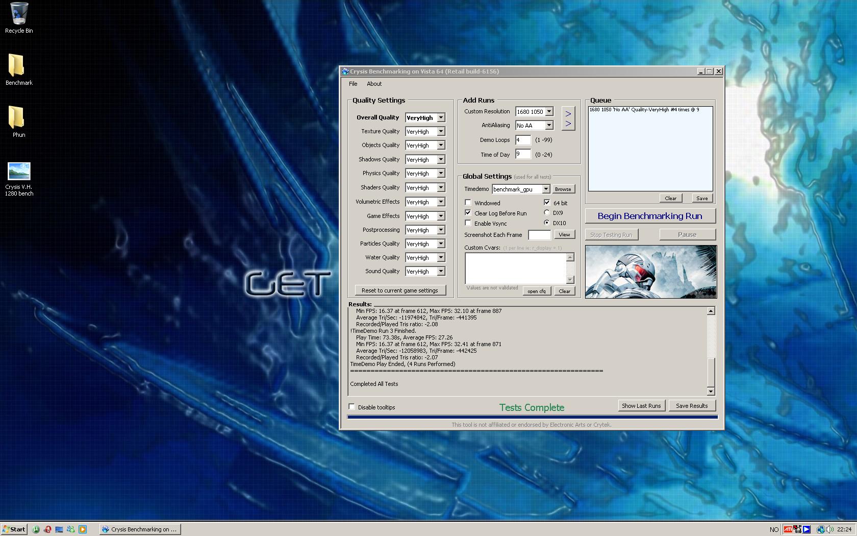 MrL Skrevet 7. august 2008 Forfatter Skrevet 7. august 2008 (endret) Det hadde vært veldig kult med en rekord liste i første post der folk fra forumet kunne konkurrere om hvem som får best resultat i Crysis Very High DX10 (helst kanskje) og kanskje også High specs. kanskje også bestemme på forhånd at man må bruke 1280x1024 eller 1680x1050 oppløsningen! Har forøvrig fått min rekord i Crysis High 1680x1050 DX10. Kjørte det med 40.66FPS på 3. loop. EDIT: lenge sia det var futt i denne tråden kanskje jeg kan lage en ny tråd med disse rekordene... Ta screen så fyker du rett opp på førsteplass forløpig * Innlegg nr 2800 * Endret 7. august 2008 av MrLG