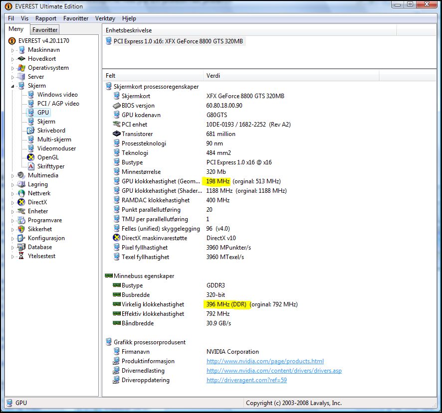 PaulKemp Skrevet 5. januar 2008 Forfatter Skrevet 5. januar 2008 (endret) Prøver igjen, lenge siden det har vært liv i posten. Sliter enda med det samme problemet. GPU MHz er fryktelig lav og jeg får ikke satt den opp. Har prøvd flere drivere uten noe annet reslutat. Har mistet muligheten til å stille på noe i RivaTurner og andre lignendende program. Noen ideer? Vil det hjelpe å flashe bios feks? Merkelig at kortet ikke oppjusterer seg ved reinstallering av ny driver... Endret 5. januar 2008 av PaulKemp