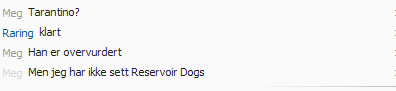 Lemon Skrevet 28. april 2010 Skrevet 28. april 2010 (endret) Da jeg sa det her, logga Petter seg av chatkarusell.no (etter at vi hadde brukt en evighet på å finne hverandre på nettet) og begynte å poste falske rykter om meg i kaféen. Oda sier (19:01): Går det bra, Petter? Petter 42 sier (19:01): Nei Oda sier (19:04): ...så du skal få hele forumkaféen til å hate meg? Petter 42 sier (19:04): ja Nå skal jeg sette på en film og slikke sårene mine. Snakkes. Endret 28. april 2010 av Lemon