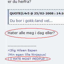 L4r5 Skrevet 25. februar 2008 Skrevet 25. februar 2008 Hater alle meg i dag eller? Så klart ikke. Det finnes de som ikke kjenner deg også.