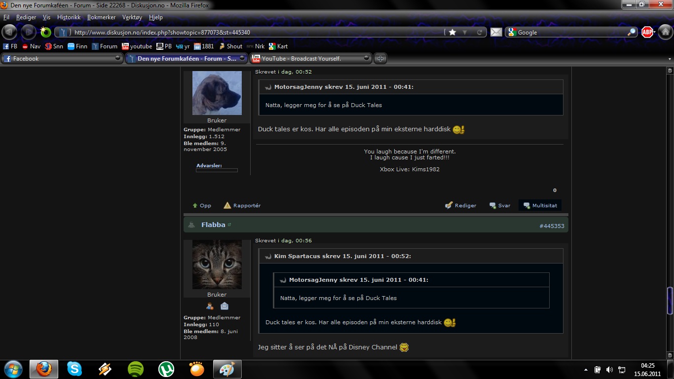 Flabba Skrevet 14. juni 2011 Skrevet 14. juni 2011 Natta, legger meg for å se på Duck Tales Duck tales er kos. Har alle episoden på min eksterne harddisk Jeg sitter å ser på det NÅ på Disney Channel