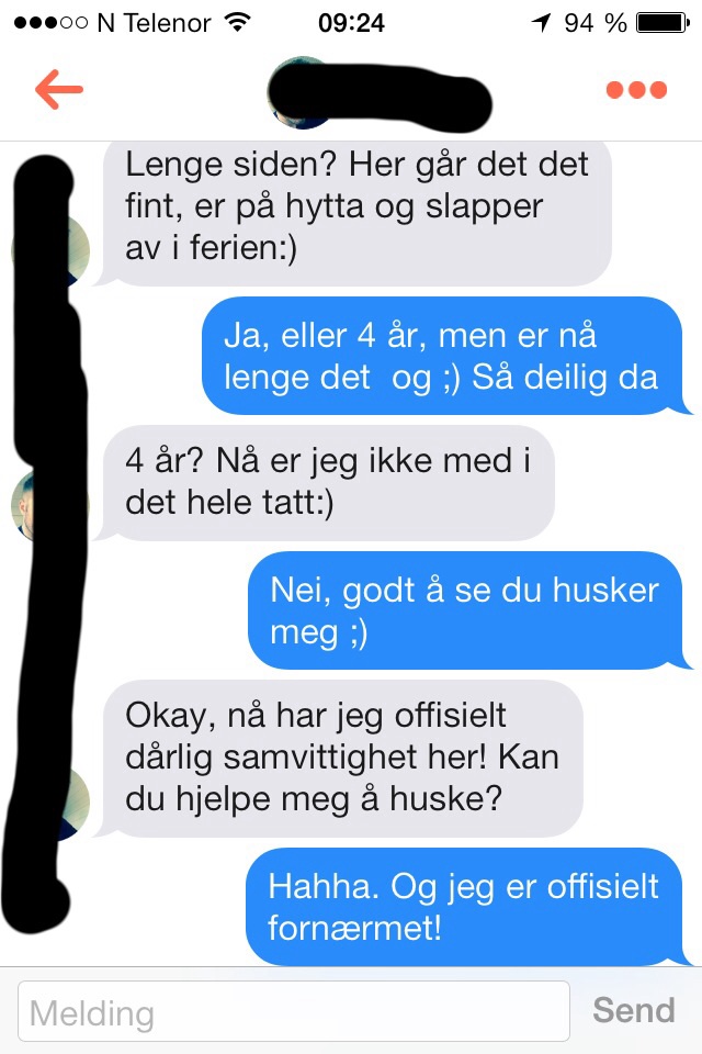 Llandari Skrevet 6. august 2014 Skrevet 6. august 2014 Fant et "gammelt" ligg på Tinder. Idag er det ikke en god dag å være meg. :O Han må tydeligvis ha gjort mer inntrykk på deg enn omvendt