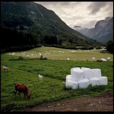 Douglas Quaid Skrevet 5. april 2008 Skrevet 5. april 2008 Dersom det er desse folk tenkjer på, so heiter det RUNDBALLAR. Det finst òg noko som heiter "silosekkar". Her er graset ikkje pressa slik som i rundballane. Brukar ein silosekkar, slår ein graset på denne måten: berre at ein brukar eit stativ med ein open sekk på, i staden for Vossakasso. Når sekken er full, knyt ein opningen att med ein tråd og slepp sekken ut av stativet. Halmbuntar som desse bilde de andre har lasta opp er tørrhøy. Rundballefestival i Fjærland