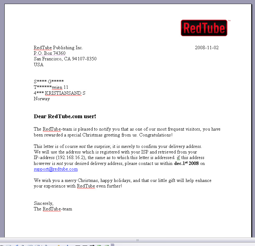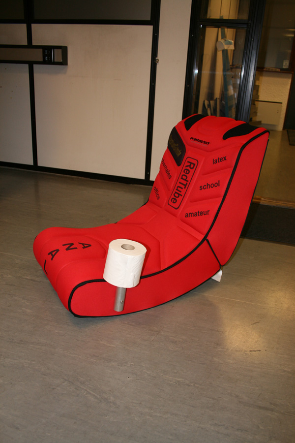 toth Skrevet 9. desember 2008 Skrevet 9. desember 2008 (endret) Okei.. Først sendte vi ham dette brevet; Han fortalte om det fullstendig oppspilt og sjokket, altså gått 100% på limpinnen. Deretter brukte vi endel timer på jobben til han ene, med kuttemaskiner, folier, farge, alurør og skruer, og produserte denne(selve stolen kjøpte vi, den har lydinnganger og høyttalere); Som blir levert på døra av et bud, sammen med denne: edit: øverste pute til venstre er navnet hans i gullskrift Noen andre enn meg som tror dette blir epic? Endret 9. desember 2008 av toth