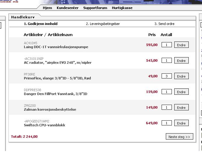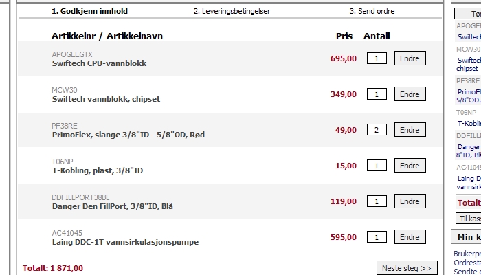 geil Skrevet 27. desember 2007 Skrevet 27. desember 2007 Her er mitt forslag. God kjøling til en fornuftig pris. Hadde nok heller valgt Apogee GT som er 200 kroner rimeligere, men den var ikke på lager så fikk ikke lagt den i handlekurven. Radiator hadde jeg kjøpt hos bilopphugger, du får dem veldig rimelig og de kjøler meget bra. Det du da spør etter er et varmeapparatregister. La til en en chipsetblokk i tilfelle du absolutt vil ha en, men mener selv det ikke har noe for seg å vannkjøle. Det var ihvertfall tidligere sånn at det gir ingen gevinst på overklokking. Dette pga at chipsettet ikke blir varmt nok til at det hindrer overklokking, men at du istedenfor får en temperaturøkning på CPU pga varmen chipsettet tilfører. Mtp frekvensene nye chipset oppnår på luftkjøing tror jeg fremdeles det gjelder, men har andre noen innvendinger på det får heller de forklare hvorfor.