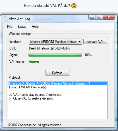 VISTA:Skru av Wireless Zero Connection. (WZC - Gjør at det lagger hvert minutt)