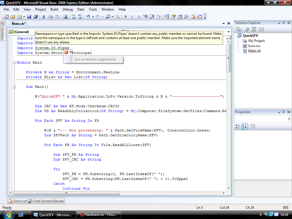 Wubbable Skrevet 2. januar 2008 Skrevet 2. januar 2008 (endret) I VB.NET express 2008 prøver jeg å importere System.IO.Pipes, men dette skjer: Har Vista Ultimate, altså .net framework 3.5... Noen peiling på hvorfor det ikke funker? Prøvde å importere det fra references også, men det er ikke i listen når jeg trykker add.. Glem det, måtte bare importere system.core Endret 2. januar 2008 av Wubbable