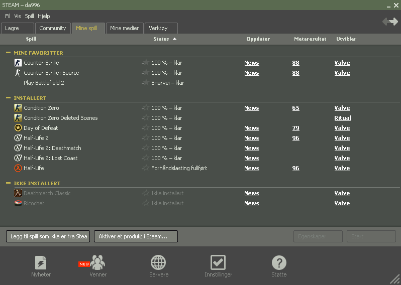 Gjest member-97590 Skrevet 16. januar 2008 Skrevet 16. januar 2008 Her er min småkoslige Steam liste:
