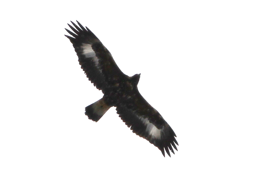 Hadde desverre bare 70-200en med 1,4x TC med, og fuglen fløy høyt, så bildet er jo dårlig sånn sett. Men et godt tegn på at jeg må få lagt ut åte og satt opp viltkameraet for å se om den kommer ned! Skjer det, så er det bare å rigge seg til med skjul, kameraer, termos med noe varmt i og god tålmodighet...