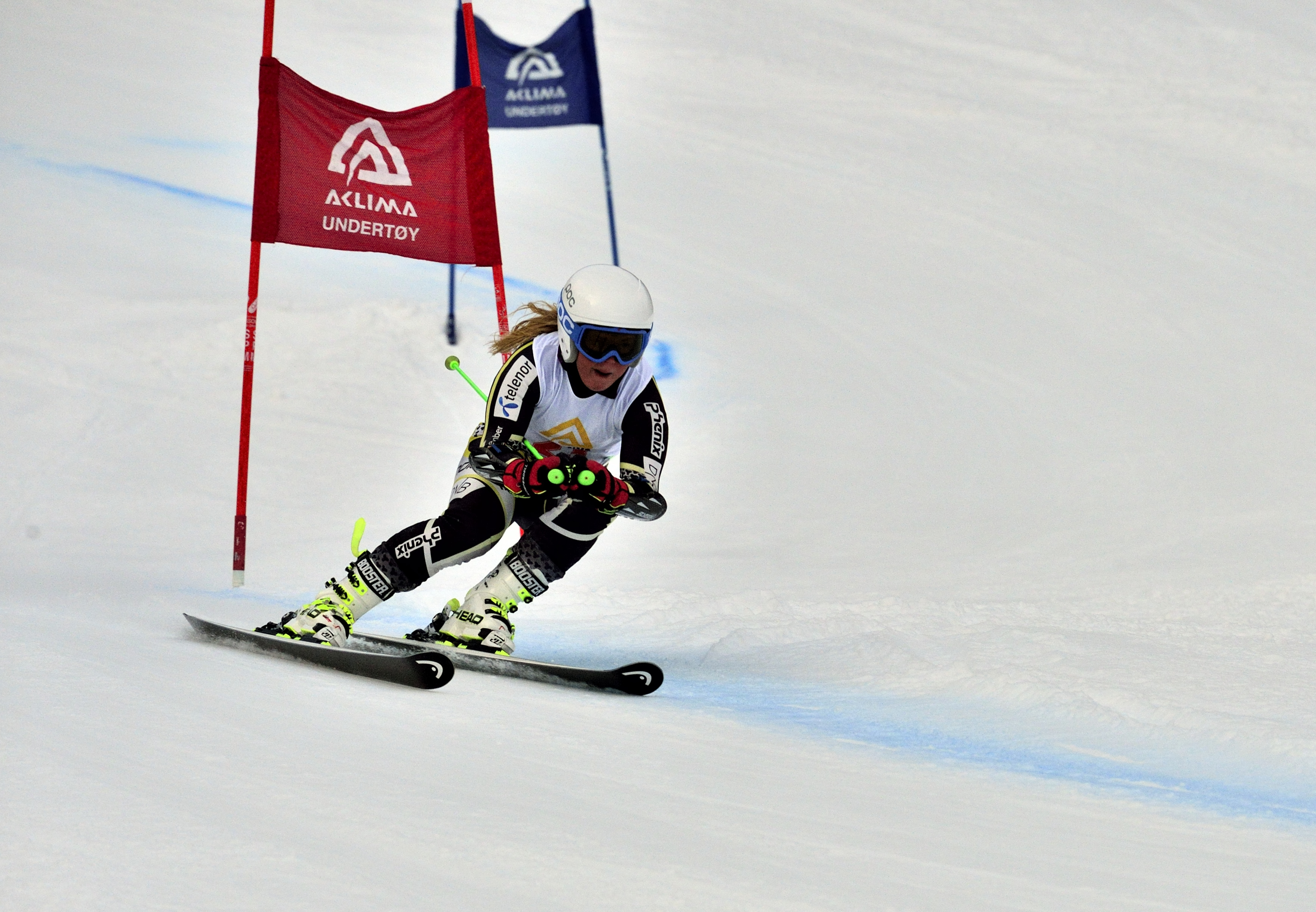 D4 med Sigma 120-300 fokuserer i hvertfall godt nok til å klare følgefokus i storslalom. Ti bilder med 0,1 sek i mellom, de jeg klarte å treffe kjøreren med traff kameraet fokus med. F5,6 så dybdeskarpheten har ikke æren. Dette er 100% av bildet.