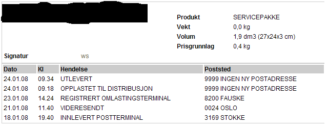 Torsph Skrevet 24. januar 2008 Skrevet 24. januar 2008 (endret) Jeg ville nok gjort det hurtigst. Og få ordnet opp i saken. Men sikker på at du har skrevet inn riktig kollinr? For størrelsen på den kollien tilsier ikke en pc.? Endret 24. januar 2008 av NeXz