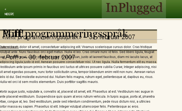 Patrick de Maar Skrevet 5. mars 2007 Skrevet 5. mars 2007 Så må du bare shave håret på toppen og tatovere inn <head>, og på bena: </body> 8082800[/snapback] også fortsetter vi nedover med div footer?