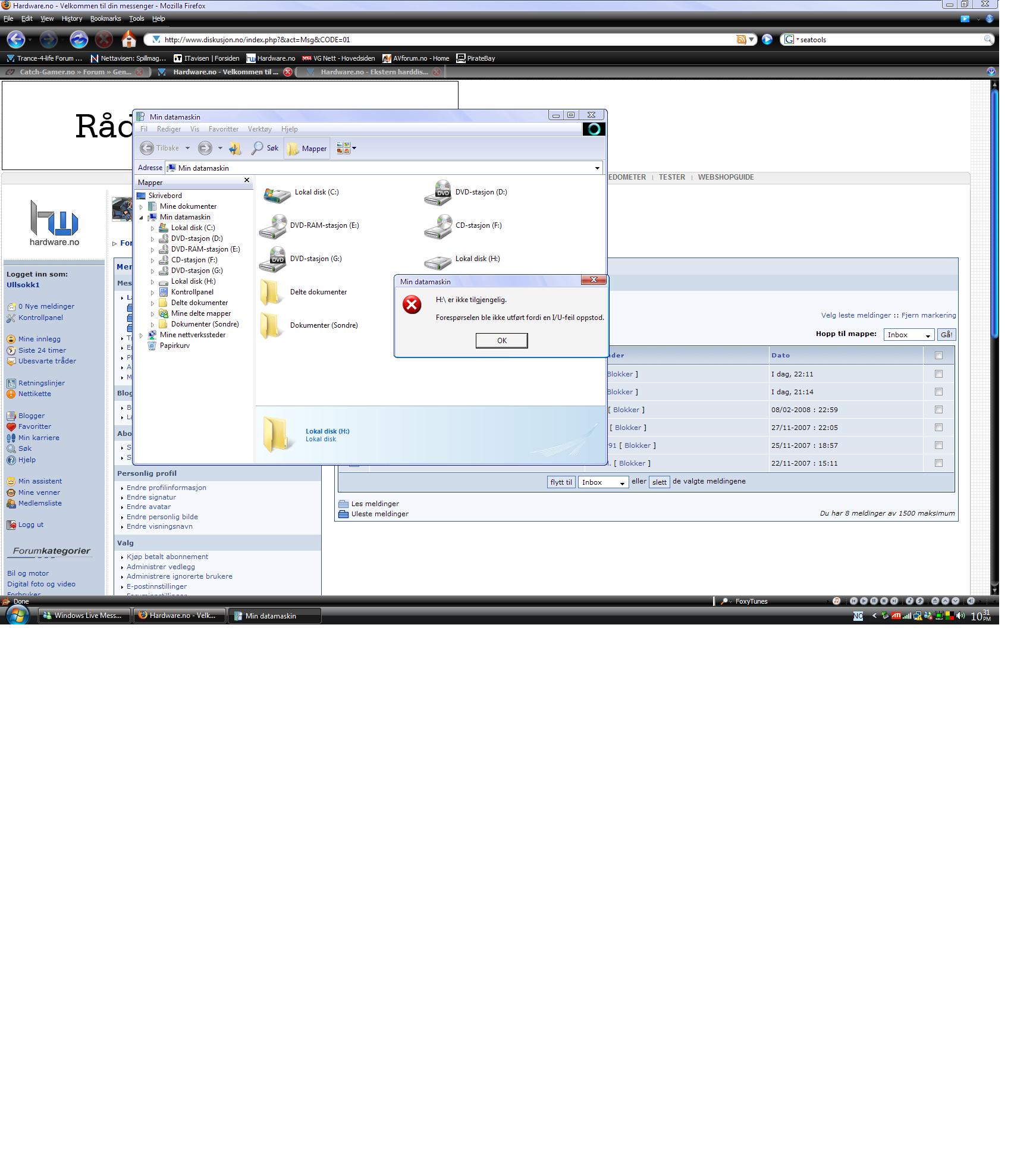 Ullsokk1 Skrevet 26. februar 2008 Skrevet 26. februar 2008 Min harddisk gikk kaputt idag etter 2 dagers ustabilitet! Det kom opp innemellom at H/.... kunne ikke lagre data og gikk tapt (ca 4 ganger) Så spilte jeg av musikk istad så stoppa musikken innemellom hvirka som den ikke leste hardisken. Så gikk jeg inn på hardisken som tok en tid og fikk ikke sletta eller tatt backup. Og nå får jeg ikke gjort noe annet enn å se at det er såså mye ledig gig igjen. Den vil heller ikke formateres