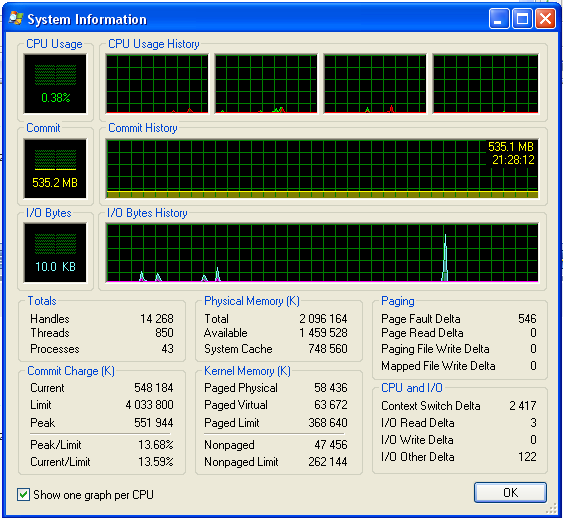 fenderebest Skrevet 23. mars 2008 Skrevet 23. mars 2008 (endret) Det du skal holde øye med er målerne for Kjerneminne (Kernell memory) Som du får opp ved å åpne System information (CTRL+I) i Process Explorer. Paged virtual/physical og Nonpaged skal være langt under sine Limits. For å få opp limitene må du konfigurere Symboler for Process Explorer dette gjøres ved å. Velge options Configure Symbols... Symbols path er: srv*c:\symbols*http://msdl.microsoft.com/download/symbols Trykk OK. Eventuellt kan du konfigurere windows til å lagre en kjerneminnedump og deretter feilsøke denne med !vm kommandoen. Endret 23. mars 2008 av fenderebest