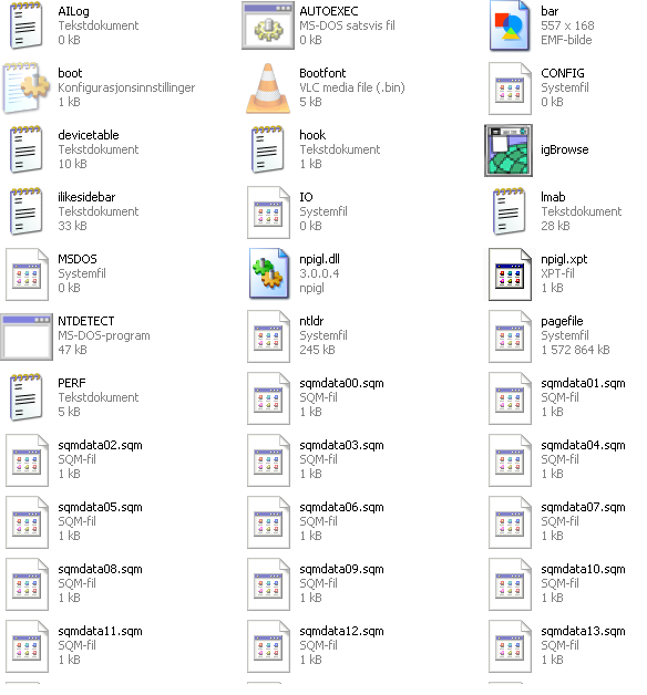 CrazyTeddy Skrevet 1. april 2008 Forfatter Skrevet 1. april 2008 Denne skal være slått av se post 23. den er slått av. Kan jeg slette alle filene som ligger under restore? For filer i C:/ root se vedlegg... bildet fikk ikke med seg alle filene men det fortsetter ned med "sqmnooptXX.sqm" er disse et problem? C_root.bmp