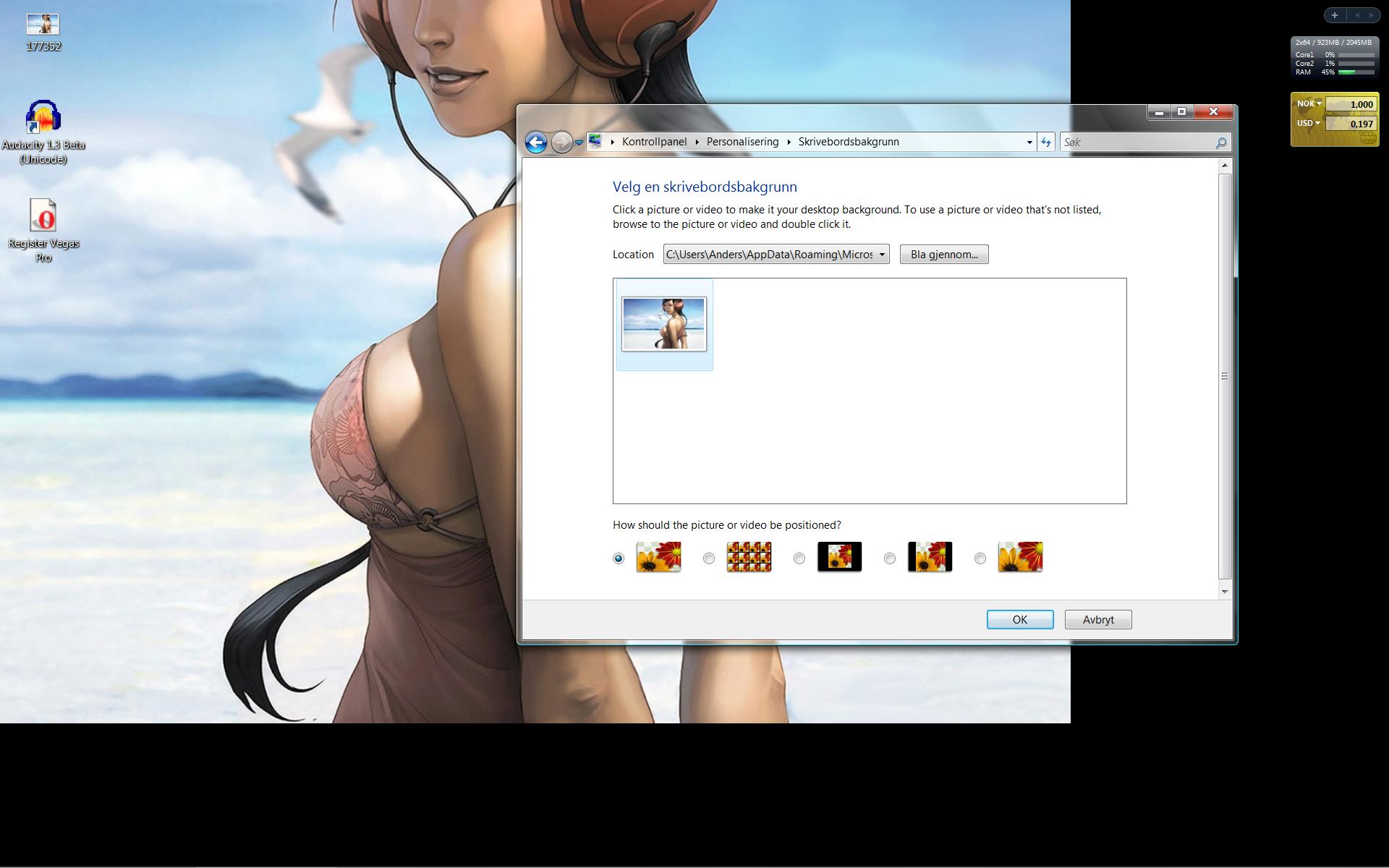 Wallpaperen er ikke plassert skikkelig. hjelp Windows (løst) vista