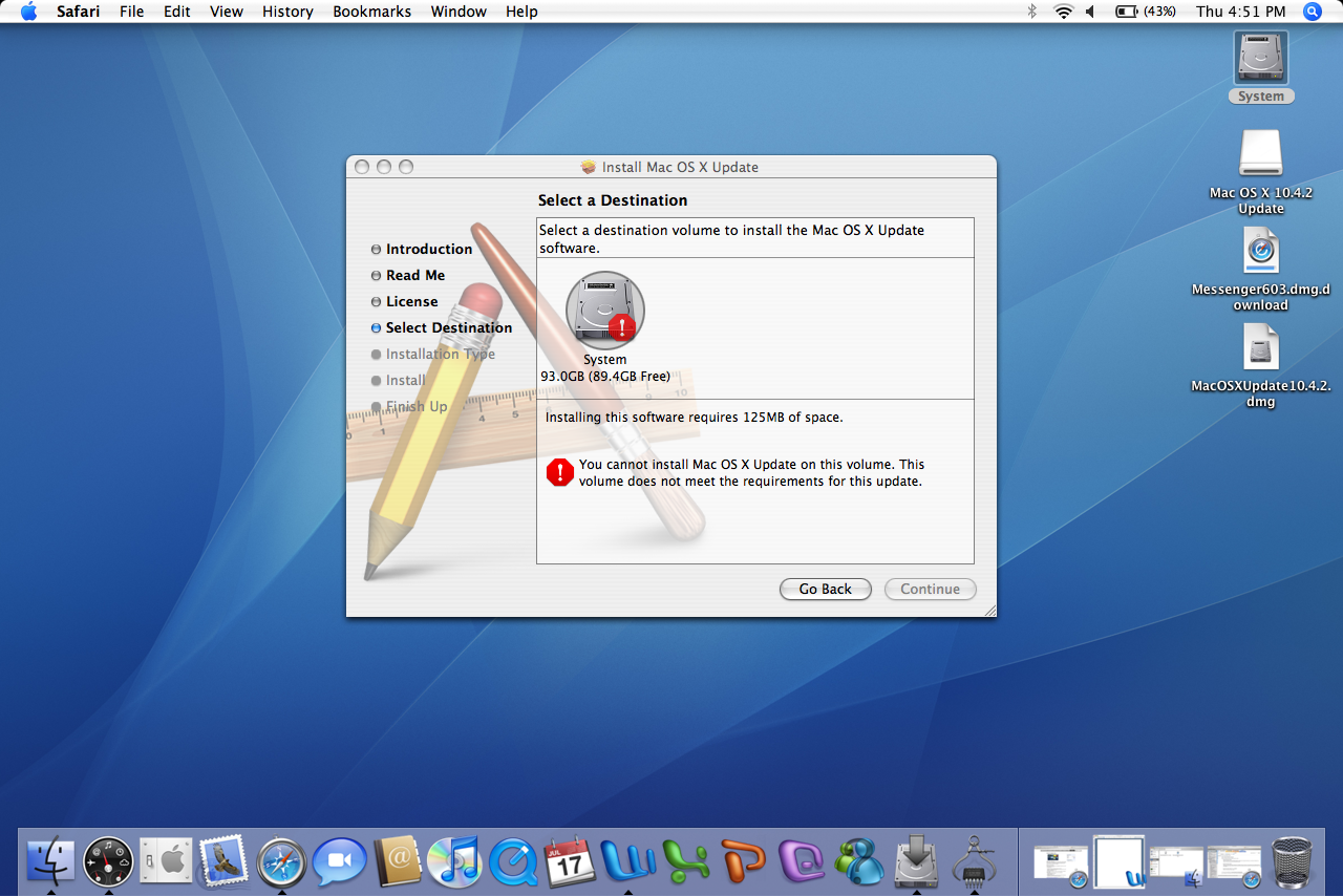 devy Skrevet 17. april 2008 Skrevet 17. april 2008 Har OS X Tiger 10.4.11 installert på maskinen. Men når jeg prøver å oppdatere den kommer det en feilmelding om at jeg ikke har nok plass på harddisken. Skal nemlig ha 128 mb tilgjendelig men har jo tross alt 89 gb. Hei, jeg kan ikke se at den sier noe om at du ikke har nok plass tilgjengelig. Den sier at hardisken ikke møter kravene for å få installert 10.4.2 10.4.2 er nemlig en eldre utgave enn 10.4.11 og kan derfor ikke installeres over 10.4.11