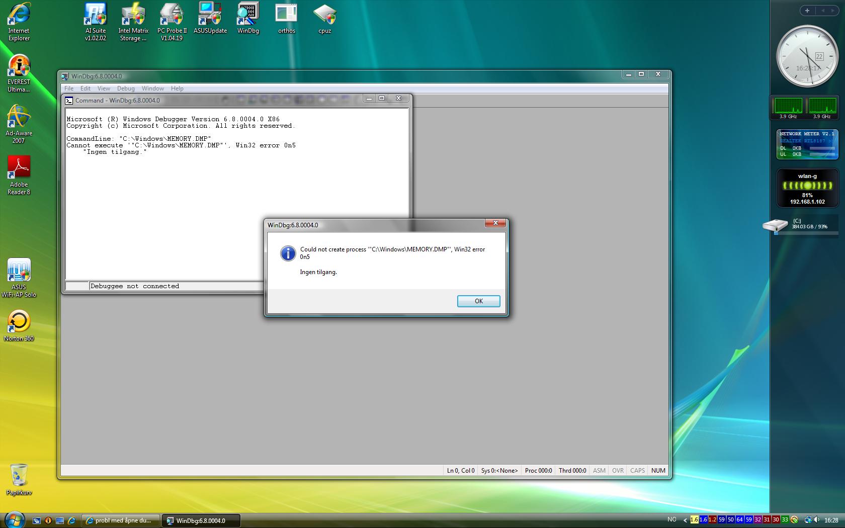 vectra94turbo Skrevet 23. april 2008 Forfatter Skrevet 23. april 2008 For det første så skal Source file path Feltet i Windbg være blankt.For det andre må du åpne en kræsjdumpfil ved å velge File menyen og deretter velge Open Crash Dump og deretter bla deg frem til fila du er ute etter (feks memory.dmp) Det kan hende at du må kopiere denne Memory.dmp fila ut av c:\windows\ katalogen for å få tilgang til den, ellers bør du bestandig åpne Windbg som administrator (Høyreklikk på programfilen og velg Kjør som administrator) okey..legger opp et screen shoot av !ANALYZE -V kan du se om dette er riktig??
