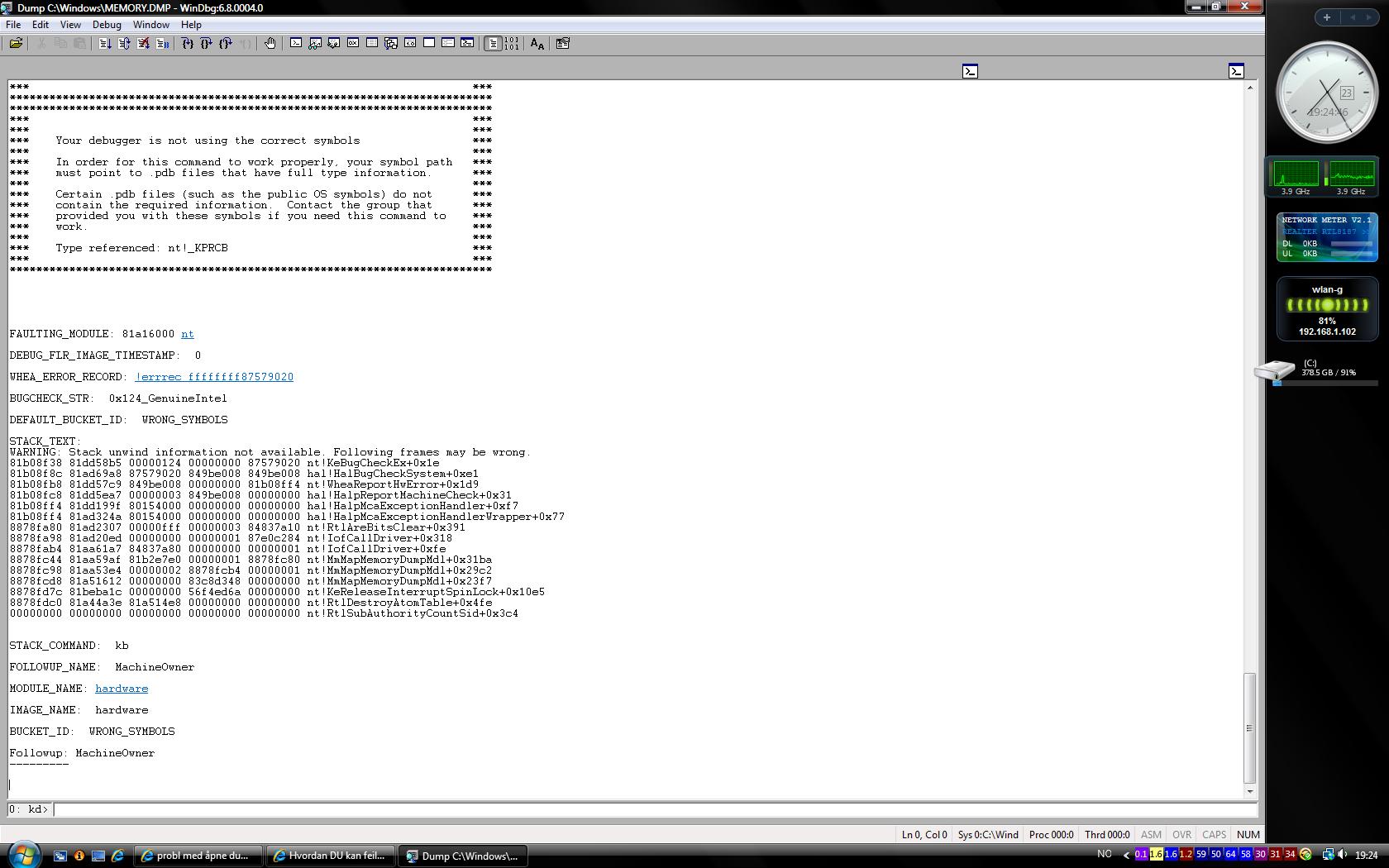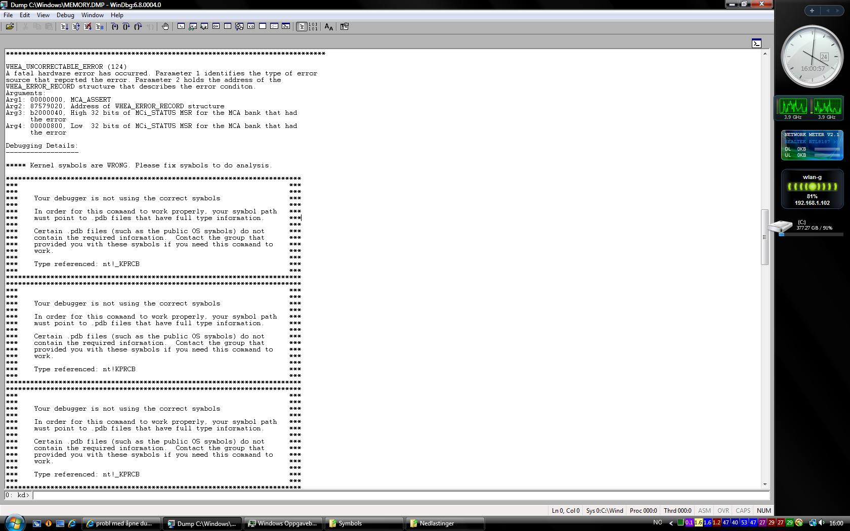 vectra94turbo Skrevet 24. april 2008 Forfatter Skrevet 24. april 2008 Det der ser rimelig riktig ut ja-litt pussig at den enda maser om Wrong Symbols prøv å fjern det som står i Image file path også om du har satt noe der. Som du kan se av kræsjdumpen har den støtt på en hardware-feil som WHEA har fanget og rapportert. Du kan prøve å sjekke ut Det som står i WHEA ERROR RECORDEN for nærmere informasjon. ja skjønner ikke dette helt. men hvordan finner jeg WHEA ERROR RECORDEN???