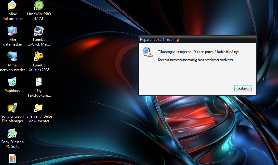 lundvegard Skrevet 23. april 2008 Skrevet 23. april 2008 Når jeg reparerer tilkoblingen skal det komme opp ett vindu som jeg skal kunne lukke. Men etter maskinen har stått på noen timer får jeg ikke lukket denne ruten som kommer opp, og det står "avbryt" og ikke "lukk" i vinduet. Så jeg lurer på hva selve prosessen heter i oppgavebehandlingen, sånn at jeg kan manuelt gå inn og avslutte prosessen. sånn ser det ut : fersfvbdg.bmp