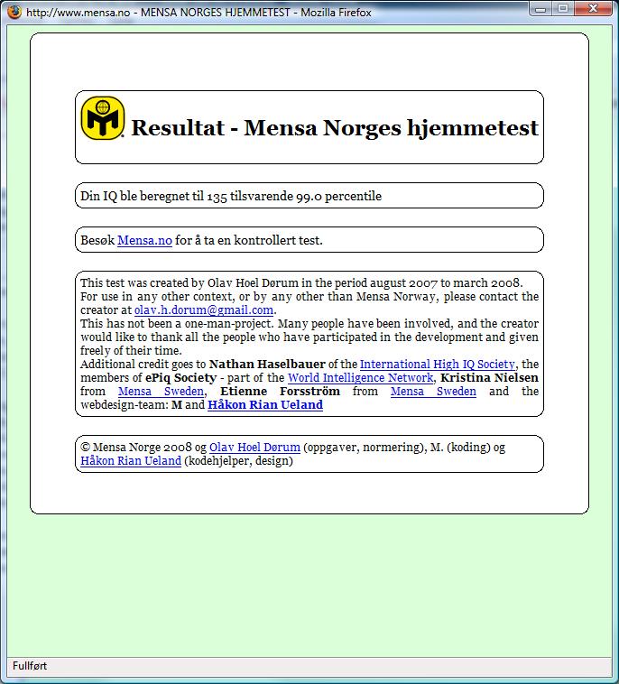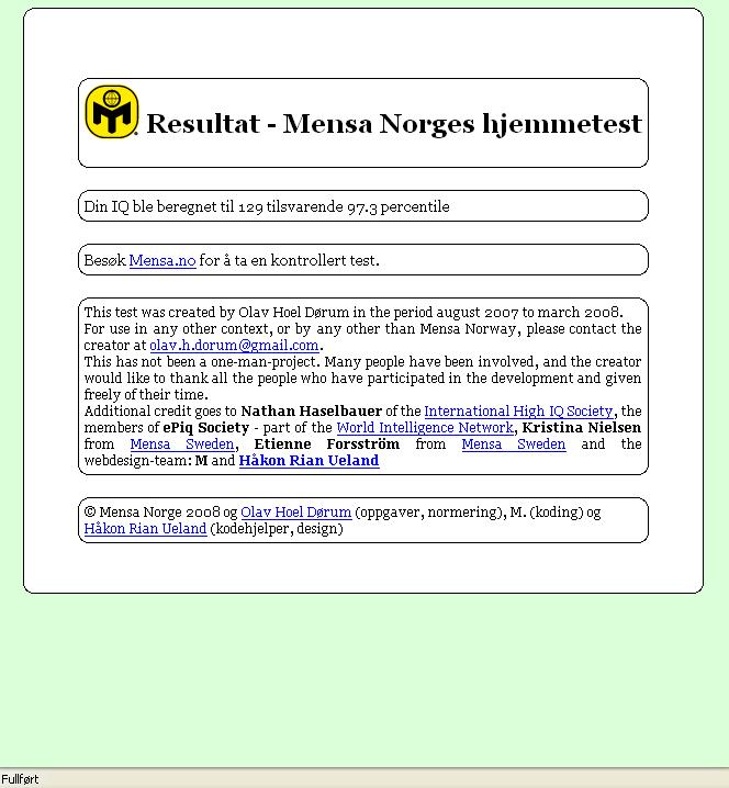 Lefse Skrevet 25. april 2008 Skrevet 25. april 2008 Fikk bare 122, så føler meg litt dum i denne tråden.