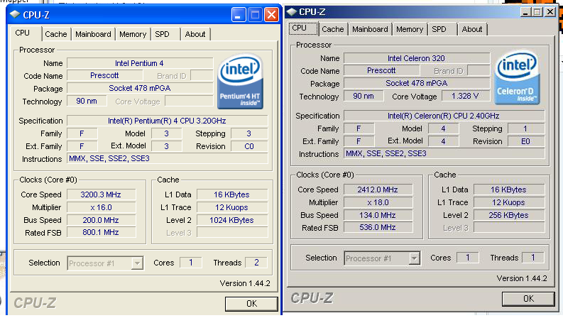 Smith-Mundt-Act2012 Skrevet 27. april 2008 Skrevet 27. april 2008 (endret) Hei. Har en gammel pc med en Celeron D cpu En venn av meg har en pentium 4 til overs siden de skal kjøpe en ny pc har brukt cpu-z til å se hvordan de er socket og begge er 478 mPGA Allt på pentium 4-en er høyere enn celeron D-en bortsett fra multipteren som ert 18 på celeron D og 16 på Pentium 4-en Vil jeg ha stort utbytte av å bytte?? Takk til alle som hjelper Helt klart p4, siden den er mye kraftigere, kjører med 16*200=3200mhz. Celeron kjører jo 18*133=2400mhz. Dessuten har den også 4 ganger så mye Cache. Ser også ut på Cpu-z at p4 har støtte for hyper threading, noe som gir en fin liten boost på 3-7%. Håper dette hjelper deg. Endret 27. april 2008 av deepsleep