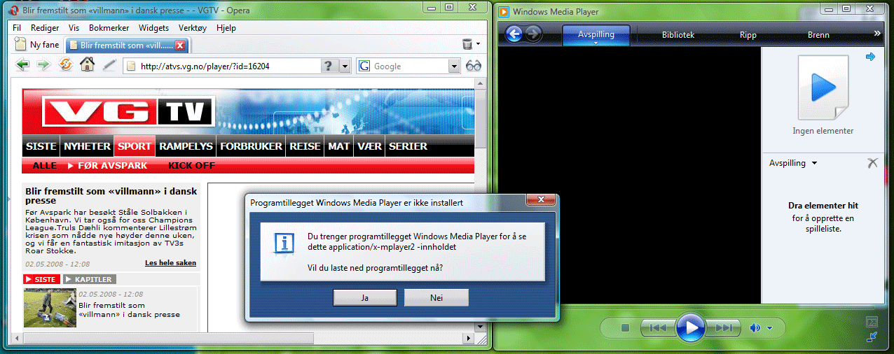 phax Skrevet 2. mai 2008 Skrevet 2. mai 2008 Sliter med å spille av noe video i Opera. F.eks denne tilfeldig valgte videon. Mens dagbladet, youtube osv funker helt fint. Får beskjed om at media player ikke er innstallert, noe det absolutt er.. har også k-lite codec pack og nyinnstallert opera. Noen tips?
