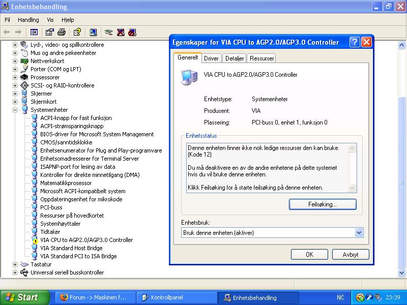 Espen K Skrevet 2. mai 2008 Skrevet 2. mai 2008 (endret) Her om dagen monterte jeg en ny rambrikke på hovedkortet og ved oppstart etterpå ville ikke skjemkortet mere. Da skjermen virker frem til etter xp logoen i oppstartetn trodde jeg det kunne være en driver feil. Rotet frem et gammel pci skjermkort og koblet til, da fikk jeg bilde. Da dette kortet et urgammelt får jeg helt elendig skjemoppløsning. Men etter å ha fjernet alle driverene og restartet så vedvarte problemet. Kortet er Radeon 9200SE skjermkort, i enhetsbehandlingen får jeg følgende feilmelding: Denne enheten finner ikke nok ledige ressurser den kan bruke. (Kode 12) Du må deaktivere en av de andre enhetene på dette systemet hvis du vil bruke denne enheten. Klikk Feilsøking for å starte feilsøking på denne enheten. Men hva er det som spiser opp disse resursene ? Legger ved skjermdump av enhetsbehandlingen. Synes det er litt rart at det skal være feil på selve skjermkortet da jeg kun monterte en ny rambrikke. Var ikke borti skjermkortet engang. Endret 4. mai 2008 av Espen K