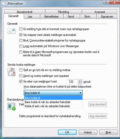 Zink Skrevet 22. mai 2008 Skrevet 22. mai 2008 Noe lignende opplevde jeg også på ny maskin her (Vista HP OEM). Live Mail spratt opp og logget på hele tiden. Jeg ble kvitt det slik: Åpne verktøy-->alternativer. Under fliken Generelt, fjern alle haker unntatt "se etter nye meldinger hvert xxx minutt" ( xxx = 120 minutt). På neste linje står det: "Hvis datamaskinen ikke er koblet til på dette tidspunktet" - under der er en dropdown-meny hvor jeg har valgt: "Ikke koble til". Mulig at tilkoblingen for hver mail-kont også bør settes manuelt: Åpne verktøy-->kontoer, merk konto-->egenskaper-->tilkobling