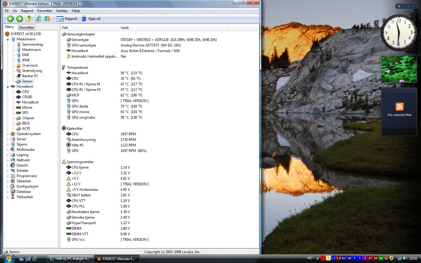 Bruk everest viste rimlig korrekt på 680i(nesten ikke avik i forhold til måling med multimeter)