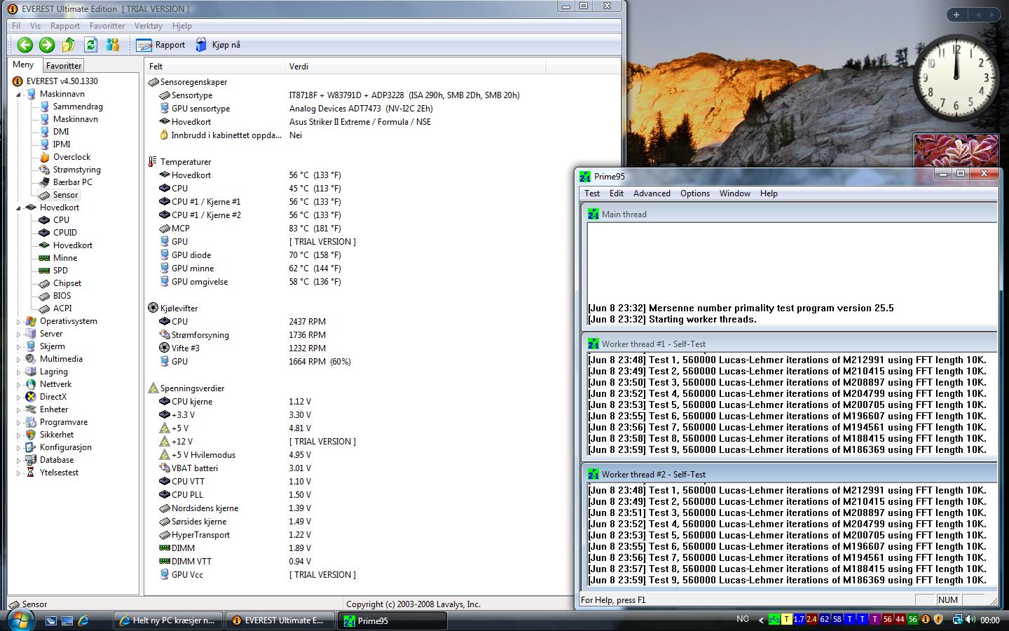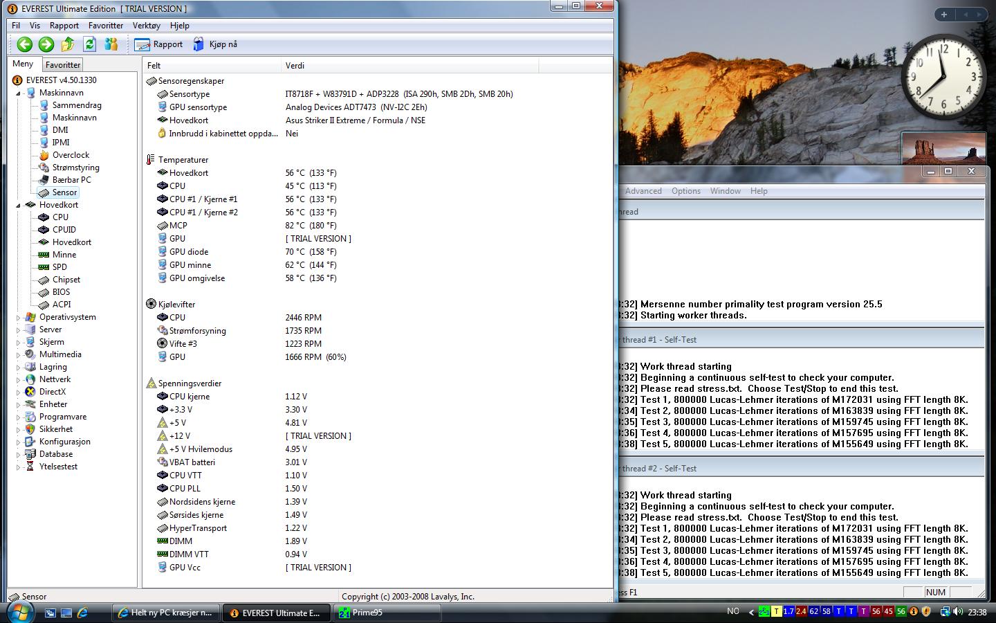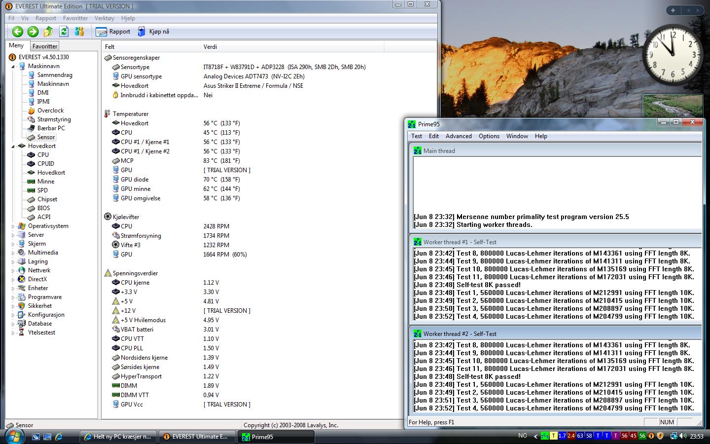 Var så dum at jeg trodde everest var et testing program så jeg avsluttet testen av ftt når jeg skulle åpne everest, så på temp i coretemp. Så stabilt ut, var mellom 50-60c. men nå har jeg startet ny test og ha et bilde (PrintScreen) før test å skal ta et under test når den har gått litt. Så tar jeg en ny Printscreen og laster det opp. Hva skal jeg gjøre etter dette?