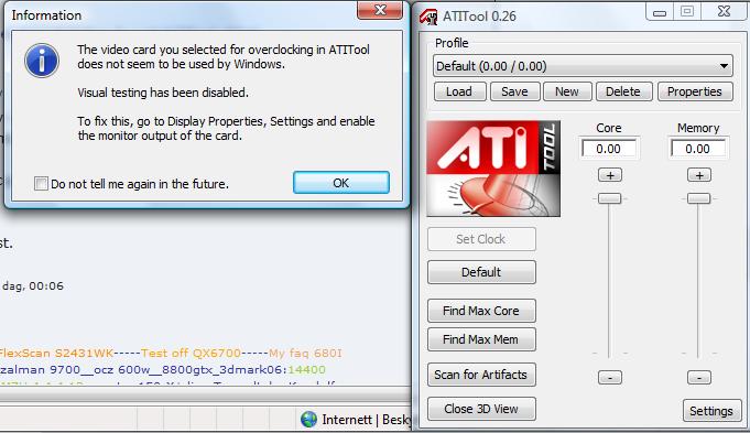 mhm, prøvde det som sto der, men kan ikke si jeg fant noen innstillinger som det sto beskrevet. I skjerminnstillinger er bare avanserte innstillinger og fant ikke noe som det der. Kan det være pga at det er Ati Tools? Det er jo ikke ati kort.