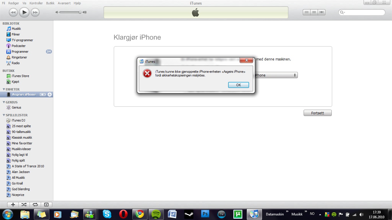 Ordnet seg ikke. Fikk feilmelding igjen under synkronisering. Derfor trykte jeg på gjenopprett i håp om å få den tilbake til fabrikkstandard. Fikk feilmelding da også :( Er DFU-mode eller recovery-mode eneste utvei nå?