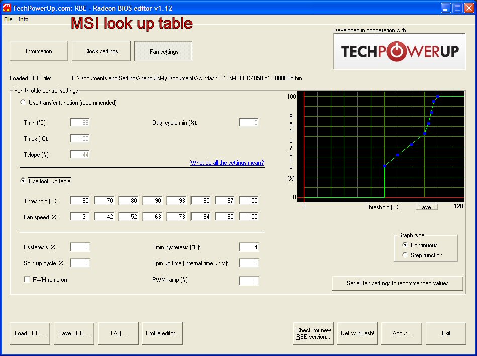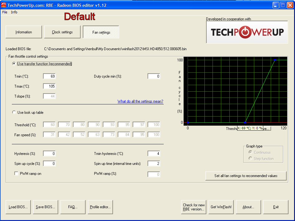 Syar-2003 Skrevet 4. august 2008 Skrevet 4. august 2008 Slik ser det ut default . Fan throttle starter med 1% fra 69° Her ser man også MSI sin lockup table som lager en ulineær graf hvis aktivisert.